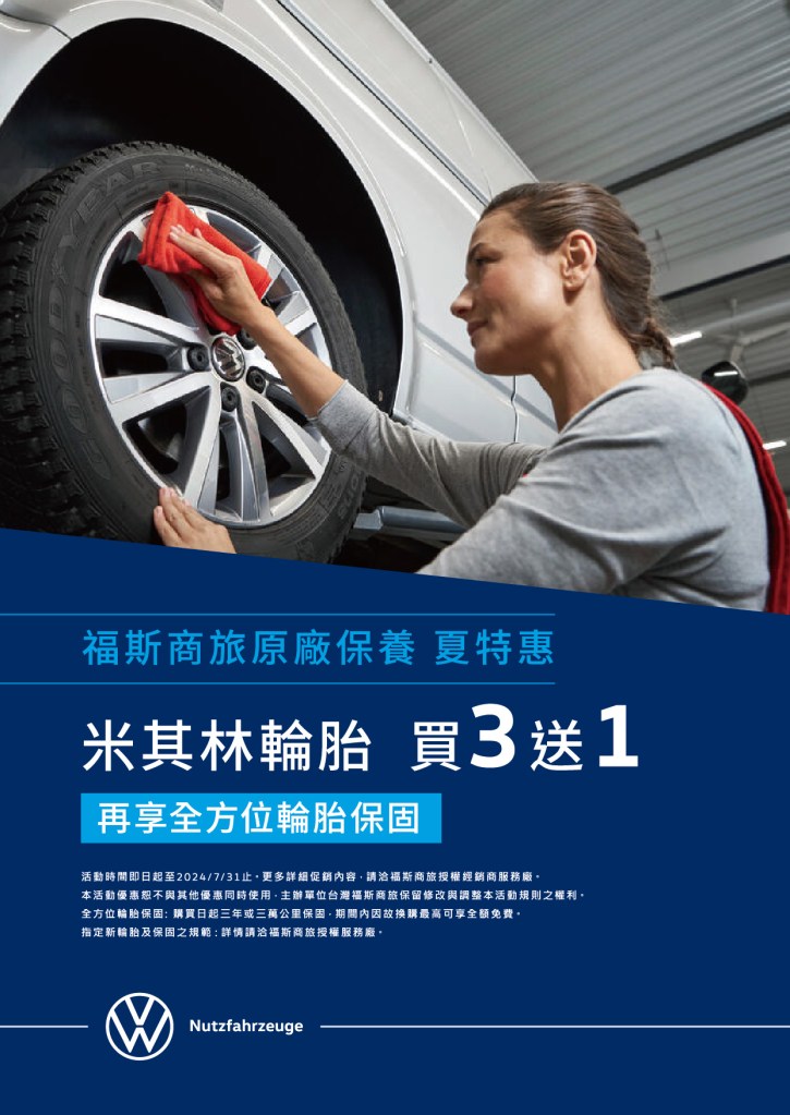 福斯商旅為了回饋忠實車主,更加碼推出限量滿額禮,於「酷涼境界」夏季健檢活動期間,消費滿額$15,000,即贈送原廠精品/配件$1000抵用券,感謝您一路相伴,福斯商旅為您的旅程提供最安全、最安心的保障。欲了解更多活動資訊,請洽全台各展間服務廠、福斯商旅官方粉絲團(https://www.facebook.com/VW.Bulli.Taiwan/) 或免付費服務專線:0800-889-699。