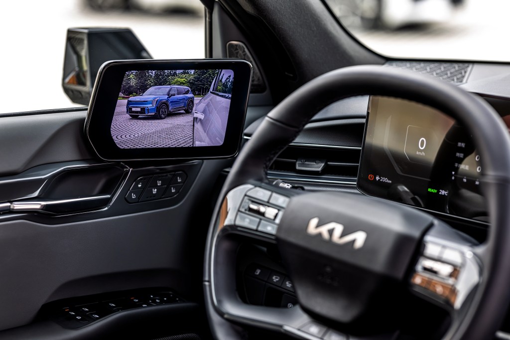 The Kia EV9 GT-Line六人座專屬選配電子數位後視鏡套件,包含車外電子數位後視鏡以及車內電子數位後視鏡,搭配紅、黃輔助線,能有效幫助駕駛簡單判斷車輛距離,創造更加寬廣、清晰的車輛後方視野。除了貼心的先進科技配備,The Kia EV9搭載Meridian™頂級環場音響系統與10種自然之聲,提供乘客環繞的音樂饗宴。