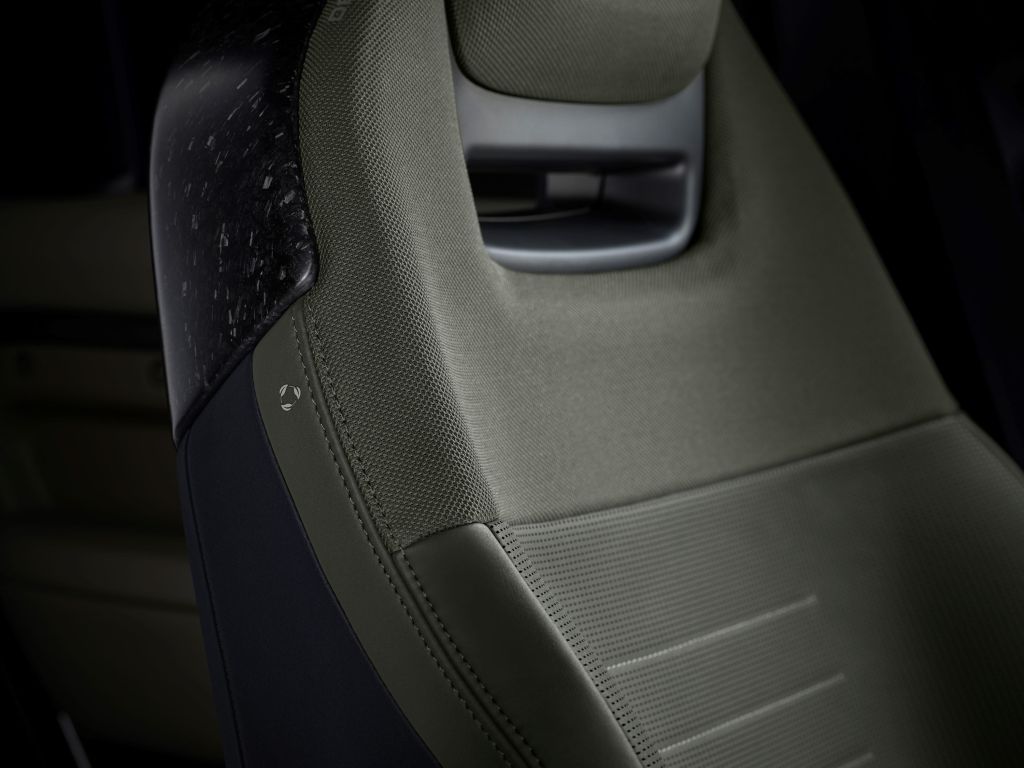 Faroe Green法羅群島綠車色與切削碳纖維飾件皆為 Defender OCTA Edition One 專屬設計,這款極具特色的飾件採用回收材質打造,應用於 Defender 引擎蓋字徽、車側通風孔周圍,以及前排座椅椅背與中控台內飾。