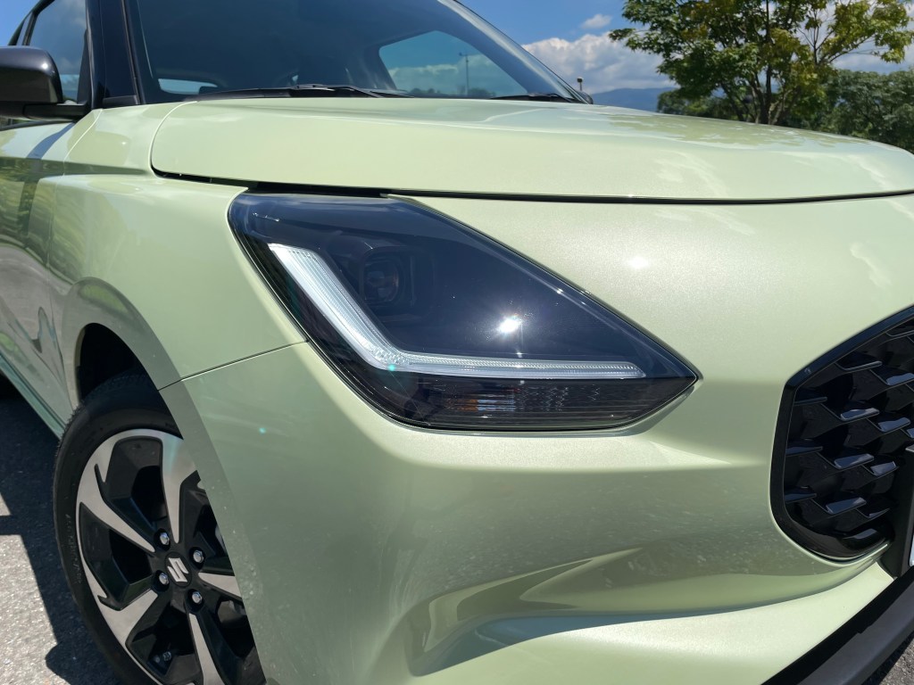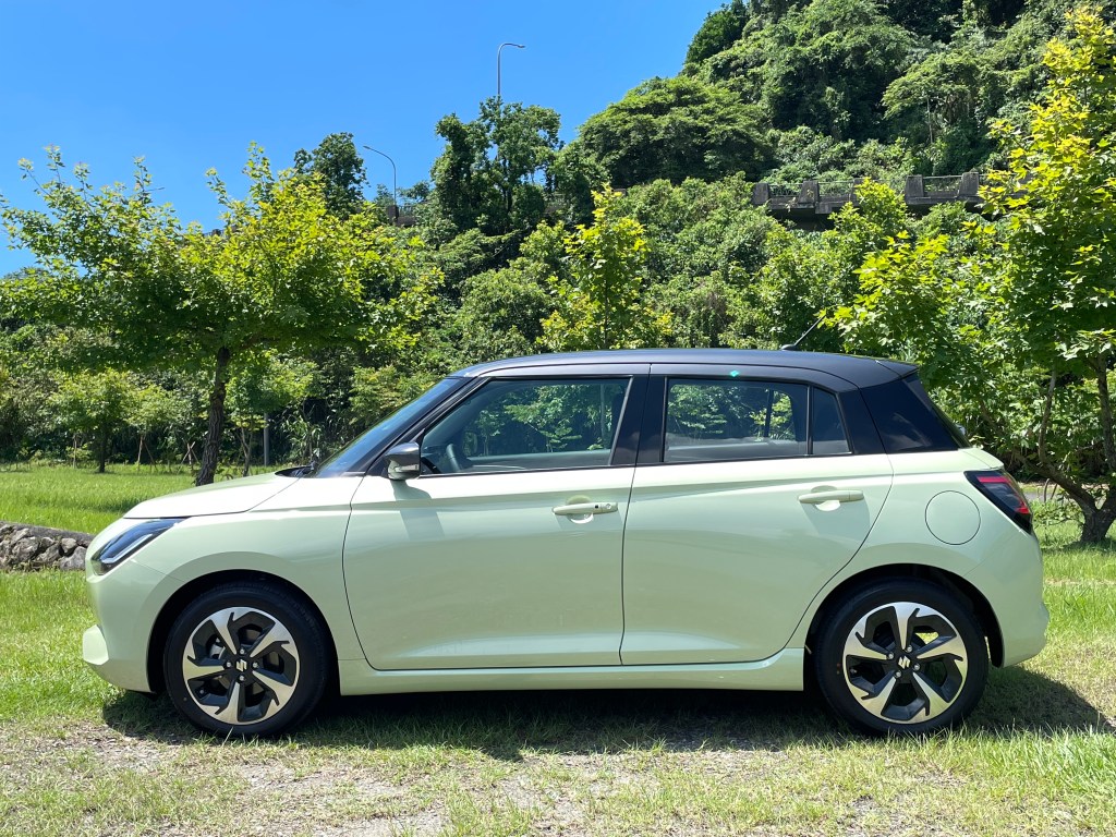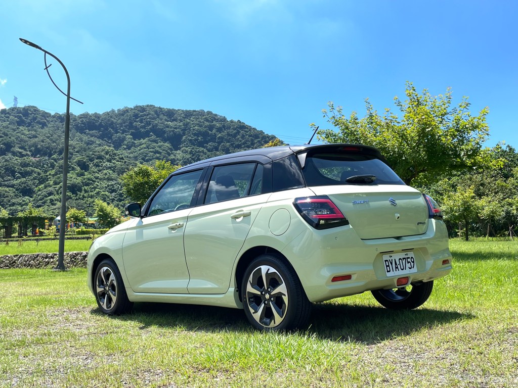 2023年東京移動展我和阿宏首度看到第四代Swift的前身、也就是Swift Concept時,面露非常驚訝的表情,因為賣相很像日本河童頭和河豚嘴綜合體,當時著實替SUZUKI擔心Swift的未來,然而台灣販售乃所謂海外輸出歐規版,因在多處細部重新修飾後變得很不一樣,見到實車後到是鬆了一口氣,引擎蓋變得比較平整,水箱護罩少了一圈鍍鉻飾環,再者前保險桿下緣採黑色處理,並取消霧燈的位置,後保險桿則完全與車身同色,在這樣的調整下展現出不同的風貌,應該是說既有的陽剛性柔和許多,也變得有點可愛,這樣的身形肯定能男女老少通吃。
