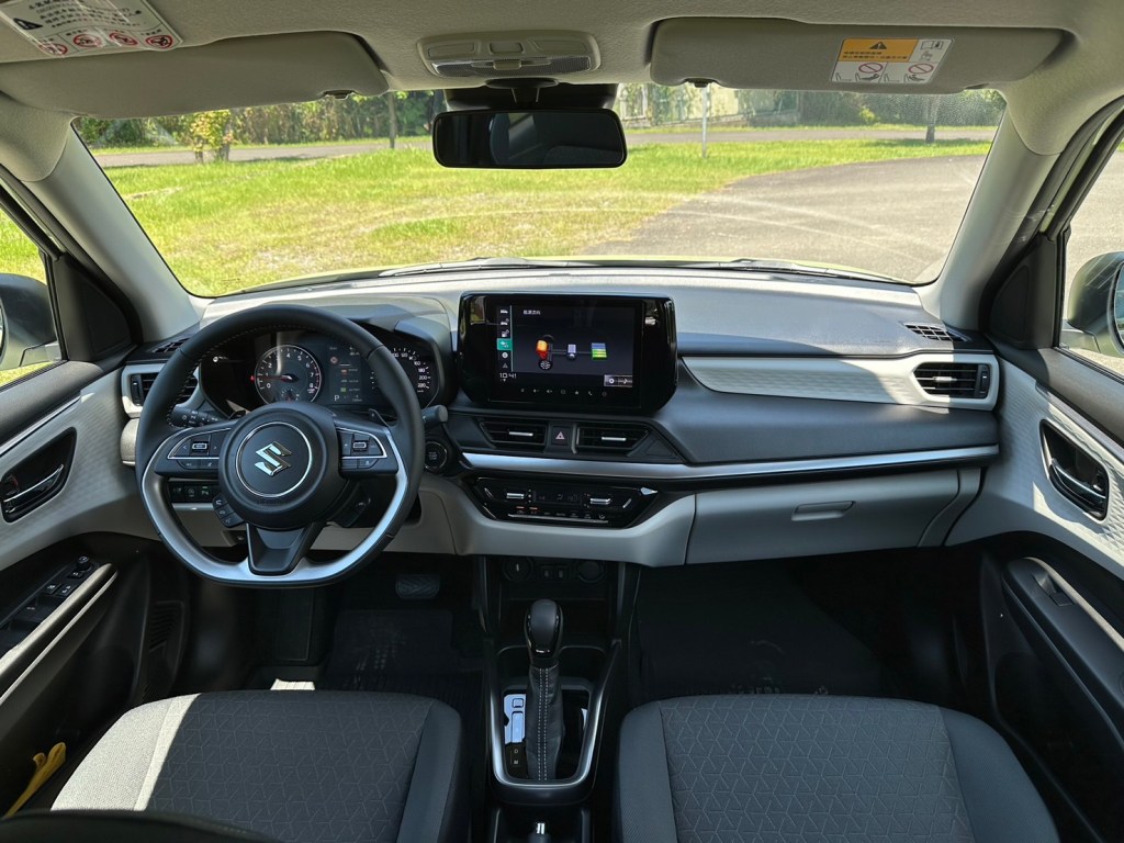 即使發展了四個世代,但Swift的造型線條與格局架構幾乎都差不多,軸距仍與第三代同樣維持2,450mm的四代Swift,擁有3,860×1,735×1,480mm的車身尺碼,僅比第三代多了根本感覺不到的15mm長度,其餘高度和寬度保持不變,原則上還是好停車、容易開為主。原本採用隱藏於C柱的後車門把手則回歸傳統,比較有趣的是車門框飾板面積偏大,視覺上好像多了類似晴雨窗的結構。內裝鋪陳依然走簡單路線,但飾板以三角紋壓花很有時尚風格,保留諸多的實體功能鍵不說,中央的9吋觸控螢幕提升質感不少,操作流暢度與功能、畫質都令人滿意,當然多功能方向盤還是頗具運動感;USB連接孔共提供Type A和Type C,置杯座也一點沒有少;不過或許是空間有限,若能增加中扶手絕對會加分。至於乘坐空間論寬敞和無壓迫絕不在話下,像阿宏這種超過180cm的大隻佬都沒有抱怨,對其他人來說想必都不會是問題,雖說行李廂容量僅有265公升,但以都會小型掀背車而言已經足夠,畢竟不是天天要載貨,若非得以傾倒椅背不就解決。
