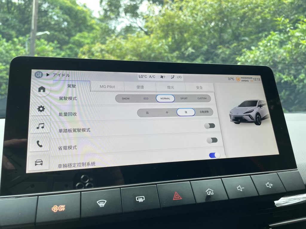 一如X POWER,旗艦版的4,287×1,836×1,516mm尺碼也同樣架構在2,705mm軸距底盤平台上,乘坐空間因少了組件而顯得意外寬敞,懸浮式排檔座頗為人性化又能規劃出更多置物空間,但後座座墊過短導致大腿支撐性略不足的問題仍存在,但坦白說MG4的定位屬於中小型跨界,要不就是一人獨享再者就是小家庭,擺放安全座椅或給小朋友乘坐是剛剛好,畢竟主要用車區域都在前方,後頭只要夠用即可無須苛求。為了造型所犧牲的後窗視野是必須去習慣的地方,但一般要倒車可從顯示幕與後視鏡判斷,有這些科技輔助反倒讓後窗的重要性沒那麼高。至於最常接觸的10.25吋中控台觸控螢幕功能部分,影音系統、車輛設定、PILOT 2.0輔助駕駛等都一應俱全,操作起來還算流暢順手,但對我這老人而言若能加方向盤後頭的儀表尺寸,判讀上勢必不會太過吃力。不過我認為有個地方可稍微改善,就是當電門關閉後再啟動時,包含動能回充、交通速限警示等的設定都必須重新來一遍,雖說應該是有安全上的考量,但這點對我來說就稍微有點困擾。