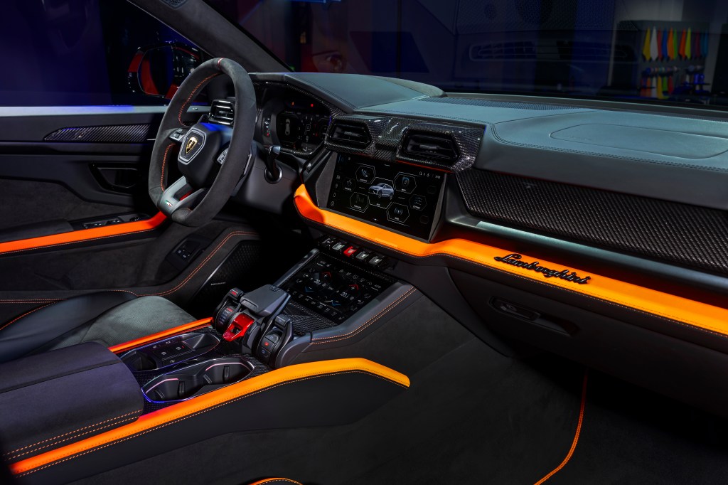 車色選擇更為多元,超過百種車色選擇,天空是唯一的界線。首部抵臺的Urus SE披載全新Arancio Egon黃昏橘車色,搭配黑與橘對比色打造而成的運動型內裝,凸顯專屬Lamborghini的造型風格。如同外觀車色,內裝選項具有多達47種色彩搭配以及4種專屬刺繡設計,若車主希望進一步打造獨一無二的蠻牛,則可透過Ad Personam頂級客製化服務隨心定製心中夢想的蠻牛風範。