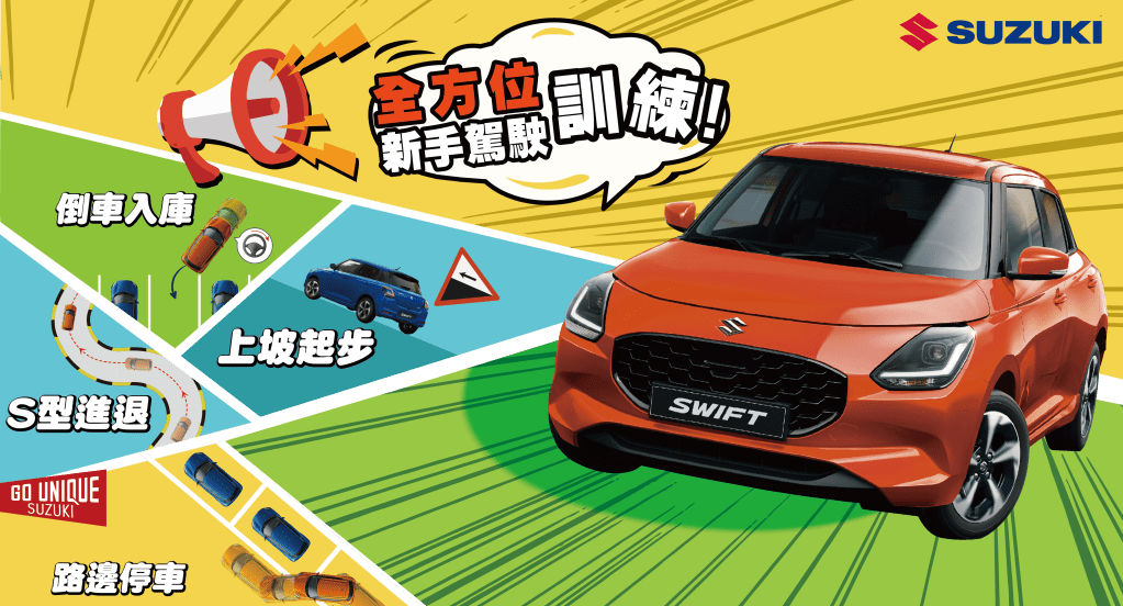 第一次購車或是新手駕駛,可能會面臨一些挑戰。TAIWAN SUZUKI將在活動中消弭這些不安,提供ALL NEW SWIFT、都會輕休旅IGNIS,給予新手駕駛們體驗SUZUKI都會小車們的輕鬆駕馭及安心駕駛的感受。