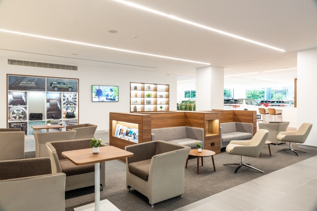 全新落成的九和台北旗艦展示暨服務中心選址於台北市內湖區新湖一路 289 號,地處內湖商辦及豪宅集聚的精華地段,且鄰近南港交流道與市民大道,為目前北台灣占地最大的旗艦展示中心。投資金額超過新台幣 4 億 5 千萬元,總使用樓地板面積達 1,800 坪,採地上四樓設計,依循 JLR 集團 House of Brands 發展理念,一樓配置 19 輛 Range Rover、Defender、Discovery 品牌新車與原廠認證中古車展示空間,讓客戶能完整體驗品牌車系各種車型選項,同時備有精心規劃的接待區、客戶休息區、商談室與交車室,營造出獨特的英式優雅氛圍。