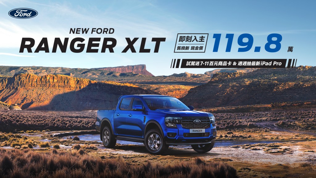 | New Ford Ranger | 2024年8月1日至8月30日止 Ranger XLT現金價119.8萬起(含舊換新) |