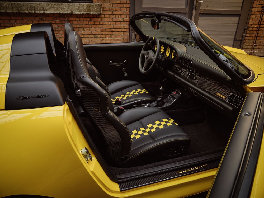 Speedster 披上專為其打造的耀眼黃色塗裝 — Otto Yellow,搭配黑色烤漆的 18 吋 Turbo 設計輕合金輪圈,黃色細線條點綴其中,更顯動感。後輪前方的黑色石屑護板,不僅承襲歷代 Speedster 的經典設計元素,更與黑色門把、前擾流板進氣口相互呼應,展現運動氣息。Sonderwunsch (特殊願望)計畫團隊更從 911 Turbo( 993) 汲取靈感,為這款 「Factory One-Off 」車型注入前擾流板、側裙和後尾翼等跑車元素,同時重新詮釋轉向燈、尾燈和燈條的設計,完美融合經典與現代兩種風格。