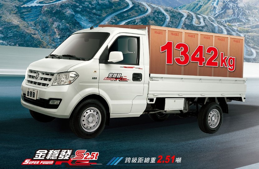 金穩發 S2.5t 採用單廂車體配置,提供 2,900mm x 1,540mm 貨台空間,貨箱板高 350mm,最大載重可達1,342 公斤,擁有 2.51 噸跨級距載重。大穩發 S2.5t 作為國內 2 噸半輕型貨車市場中雙廂車款的唯一選擇,提供四人座空間以及 2,060mm x 1,540mm 超大貨台,最大載重達 1,270 公斤,同時配備後座中央空調系統,讓在外打拼的頭家們也能享有更舒適的乘坐環境。