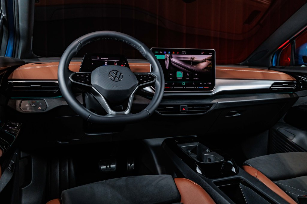 The new ID.4 & ID.5 駕駛座具有多功能方向盤附加熱功能(觸控式)及 ID. Digital Cockpit 全邏輯數位化儀表,能自由切換顯示車輛數據、IQ.DRIVE 智能駕駛輔助系統與連結手機提供的導航,依照需求可以同時三幅顯示,迅速掌握行車資訊,中央控台大尺寸彩色 Discover 12.9 吋多媒體鏡面觸控主機同步最新德國第四代模組化資訊娛樂系統(MIB4),提供更加靈敏流暢的操作手感和一目了然的清晰介面,並且整合包含空調、座椅加熱、App-Connect 多媒體手機鏡射與車輛資訊等包羅萬象的功能,此外,根據喜好與心情,能夠選擇高達 30 色車室氛圍燈(含多重模式選擇),透過科技燈光營造沉浸體驗,時而輕鬆靜謐時而熱情活力,而設置在前擋風玻璃下方的 ID. 車系獨有 ID.LIGHT 智能感應互動光條,隨車輛啟動、煞車、上鎖和充電時的進度切換形式與色彩,人性化互動成為駕駛智慧好夥伴,增添出行趣味和呈現重要訊息及安全警示。The new ID.4 Pro S 配置 ArtVelours 類麂皮/皮質座椅,純電跑旅 The new ID.5 Pro S 則具 ArtVelours 類麂皮 / 皮質座椅跑車型座椅,雙車款標配雙前座多向電動調整座椅附記憶、迎賓功能、雙前座 ergoActive 座椅附電動按摩功能、雙前座椅電動腰靠調整以及雙前座椅加熱功能,日常駕駛獲得最適切的座椅角度與腰部支撐,疲憊長途旅行之中帶來舒緩勞累的背部按摩,賦予療癒放鬆駕乘體驗,而駕駛座下方 ID. 專屬金屬踏板上,還有取自影片及音響播放鍵的「開始」和「暫停」創意設計,依照油門和煞車功能有不同圖案,The new ID.4 GTX 及 The new ID.5 全車系更配備豪華 Harman Kardon 環繞音響系統(480W 輸出)與 10 支高傳真揚聲器,傳遞悠揚高品質聽覺享受。
