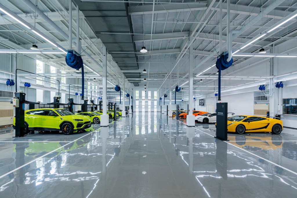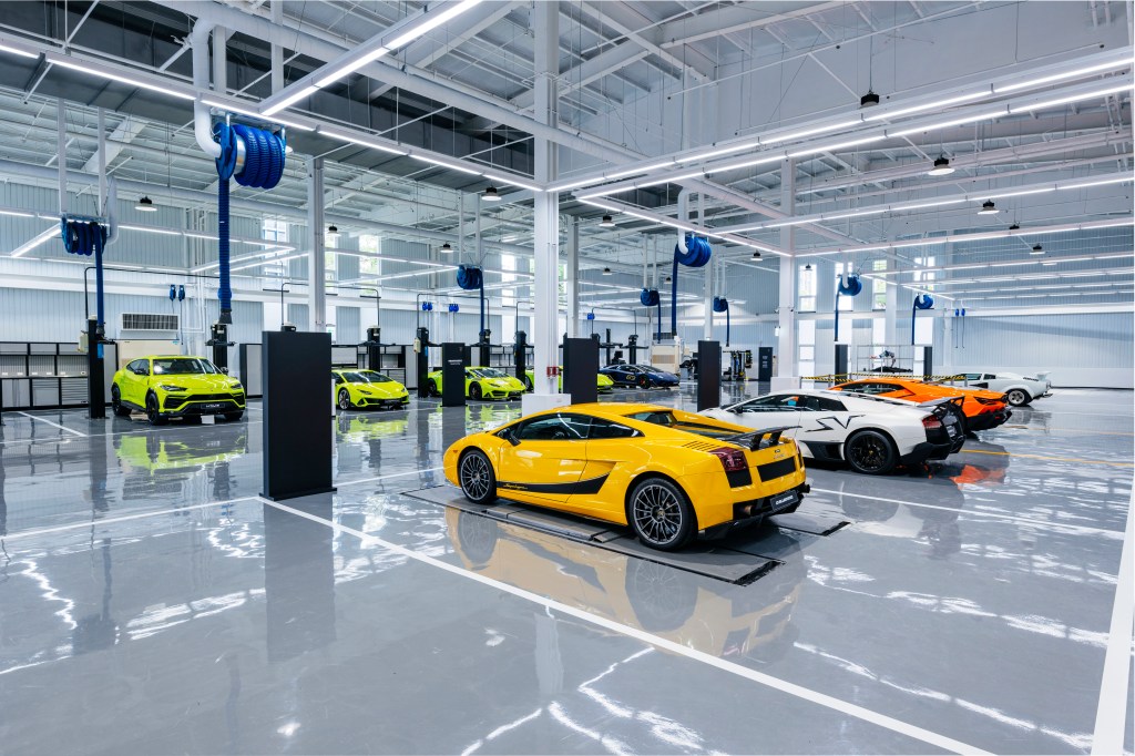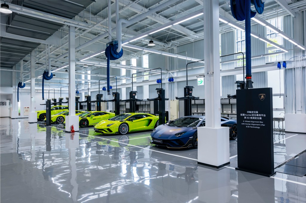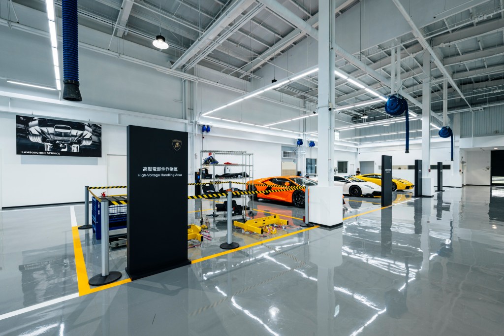全新的服務中心將取代原本位於南港的服務廠,座落內湖,緊鄰Lamborghini展示中心。此佔地超過1056平方公尺的現代化建築完美體現了 Lamborghini 的招牌設計風格,以流暢的線條、大膽的多邊形造型與鮮明的色彩點綴,打造出完全呈現品牌精神的環境,旨在專為每位 Lamborghini 車主提供最頂級的照護與服務。