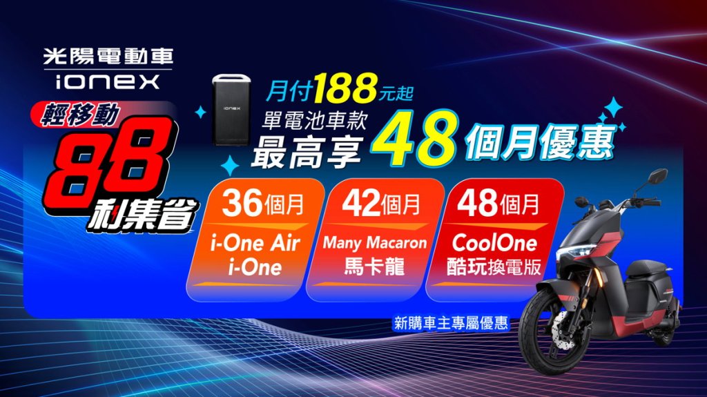 市場獨家換電版微電車「酷玩」上市!Ionex「88利集省」單電池輕移動資費48個月市場最優惠