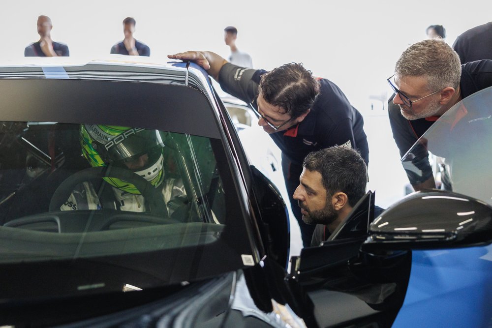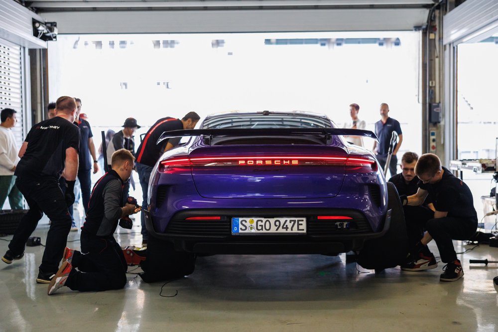 研發車手 Lars Kern 表示:「變化莫測的天氣為我們帶來不少挑戰。賽道上不時飄著小雨,直到最後路面仍然有些濕滑。這更讓我對 Taycan 的平衡性和性能印象深刻。在起終點直道末端,進入『蝸牛彎』時,必須全力煞車。」這個彎道以其形狀而得名:它隨著路線推進而逐漸變窄,結構上模仿蝸牛殼的設計。Lars Kern 表示:「加速駛出蝸牛彎也至關重要,才能以尽可能高的速度進入後續的左彎。賽道的其餘部分也相當高速。駕駛 Taycan Turbo GT,我在最快的點,看到時速錶上的速度達到 300 公里。Taycan Turbo GT 的動力傳動系統專為最大的循跡性和性能而設計,再次在賽道上證明其實力。」