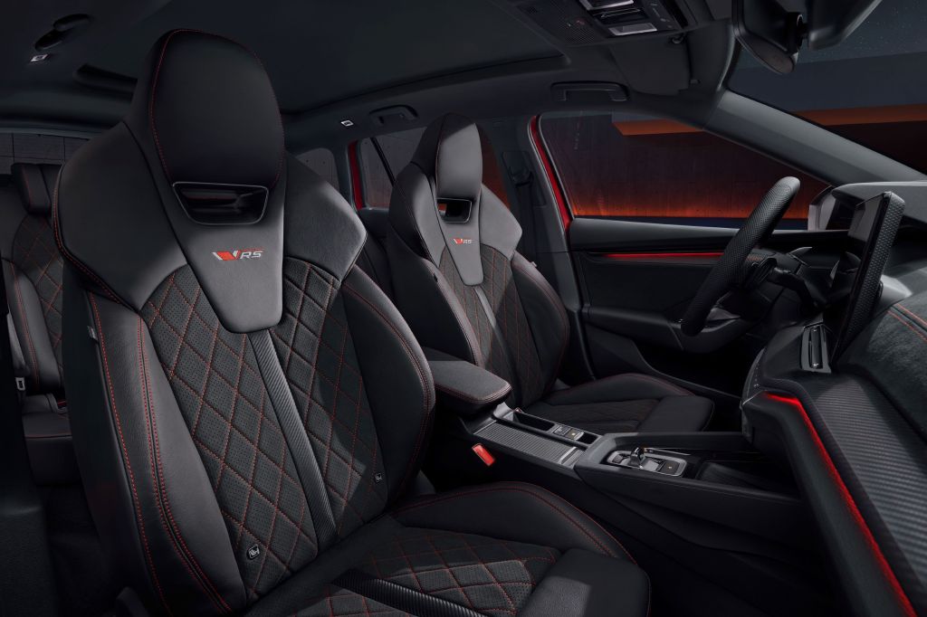 在台灣每賣出 3 台 Octavia 中,就有 1 台是 RS 車型,作為 Škoda RS 家族的中流砥柱,將運動性能與智慧科技完美結合,成為引領新世代車型的旗艦代表。全新 Octavia RS 搭載集團名機 EA888 2.0 TSI 渦輪增壓引擎,可輸出高達 265 匹最大馬力及 37.8 公斤米的最大扭力,能在 6.4 秒內即完成 0 到 100 公里的加速,極速更可達 250 公里每小時,展現出強大的動力性能。這款引擎相較於上一代 245 匹馬力進行了優化,燃油噴射壓力提升至 350 bar,並採用全新設計的活塞頂和曲軸油封,以降低摩擦和油耗,進一步提升了動力效能和燃油經濟性。外觀設計上,全新 Octavia RS 充分展現不凡的熱血運動風格,並融入了 RS 專屬的黑化元素,包括全新 RS 標誌、黑色水箱護罩、後視鏡外殼、窗框、尾翼及 19 吋 RS 專屬輪圈,處處彰顯動感與力量,與紅色煞車卡鉗的鮮明對比,使整體造型更顯動感。同時,RS 專屬前保桿和跑車式排氣尾管設計,搭配全 LED 尾燈、序列式方向燈及離家/返家動畫展演功能,為車主提供前衛且充滿未來感的視覺體驗;內裝部分,全新 Octavia RS 採用頂級材質及運動化設計,Suedia 跑車座椅以紅色滾邊縫線精細點綴,並搭配 RS 專屬碳纖維飾板,營造出動感十足的座艙氛圍。不僅如此,雙前座更是配備了八向電動調整,並內建兩組記憶及按摩的功能,確保駕駛與乘客皆能享受極致舒適的乘坐體驗。