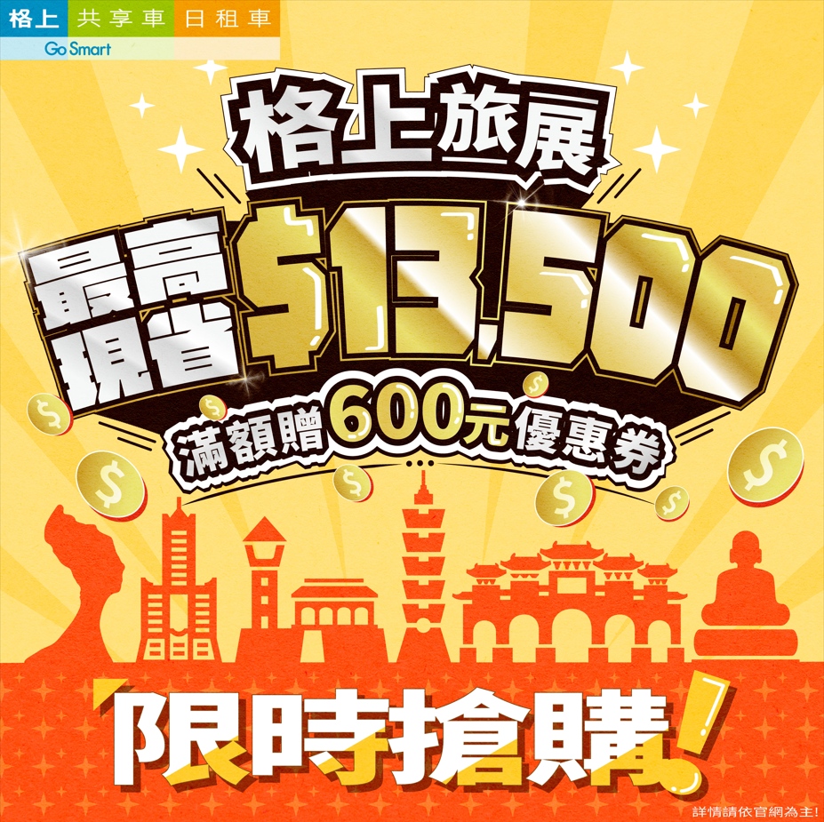 年度旅遊盛會ITF台北國際旅展將於11月舉行,格上租車率先於本月25日熱烈推出線上旅展。格上日租車及共享車皆有誠意滿滿的旅展票券,多樣商品組合滿足用戶各種需求。不論購買單張租車券或是多張組合都有優惠,最高現省13,500元;共享車同步推出大面額千元折抵券供選擇,活動至11月11日止,限時搶購中。