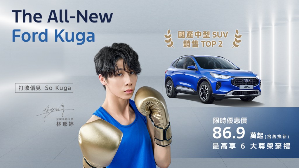 福特六和獨家邀請金牌拳擊國手林郁婷擔任 The All-New Ford Kuga 活動大使。林郁婷在拳擊賽場上,面對質疑與批評,持續突破自我,在全球賽場發光發熱。她專注、無懼挑戰的正面形象,與 The All-New Ford Kuga「為進化 從心定義」的產品精神完美契合。 福特六和本月推出全新「Ford Kuga X林郁婷」形象廣告(影片連結請點此),以「只要內心夠強大,就能戰勝一切」、「打破偏見‧So Kuga」為核心主軸,呈現林郁婷個人奮鬥歷程,巧妙地將The All-New Ford Kuga產品相連結,傳達追尋自我、不斷進化的產品理念,讓這份激勵人心的精神烙印在每位觀眾心中。 此外,林郁婷更親自參與深度試駕,並分享給全台消費者,共同感受 The All-New Ford Kuga 超乎同級的產品實力與魅力。