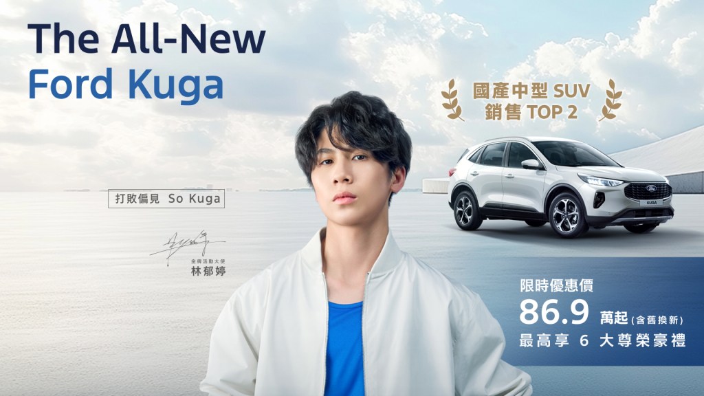 歐洲超能智駕跑旅 The All-New Ford Kuga 自上市以來,Ford全台據點客源顯著成長,熱絡買氣更反應於銷售佳績:10月訂單突破800張,新車掛牌成績榮登國產中型SUV前兩大品牌,並較上月成長近140%,充分展現 The All-New Ford Kuga 的過人魅力。The All-New Ford Kuga以「同級首創」的專屬子品牌套件、「同級領先」的 Ford Co-Pilot360™ Vision 2.2 全方位智駕預判輔助系統,以及「同級首見」的 Ford Pixel AI 預判型動態照明系統等多項領先科技,搭配全新的 1.5T/2.0T EcoBoost® MPC 模組化引擎及全新 8 速自排變速箱等,全新配備升級超過15萬,更讓利超過20萬,獲得消費者一致好評。