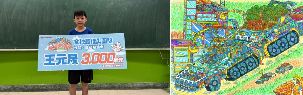 TOYOTA自2004年開始舉辦夢想車創意繪畫大賽,每年在全球約100個地區邀請15歲(含)以下的青少年及兒童參賽,依年齡分為A組(7歲(含)以下)、B組(8-11(含)歲)、以及C組(12-15(含)歲) 3個組別。各組金獎作品將代表台灣至日本參加世界大賽,如被評選為世界金獎者,個人可得5,000美元獎學金、且該得獎者的學校也可獲得10,000美元的高額獎學金註2,鼓勵學童發揮無限創意,拿起繽紛畫筆,和TOYOTA一起前進夢想,打造更美好的移動生活。