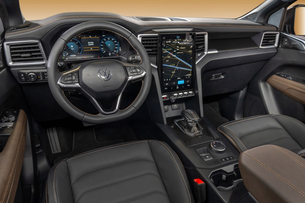 The All New Amarok 以豪華質感顛覆傳統之姿,打造全面進化的德智科技豪華運動皮卡車內座艙。有別於傳統越野皮卡單調座艙配色,其座艙內部採用高質感的黑 / 褐雙色內裝搭配黑色頂篷,營造出沈穩優雅且散發精緻奢華的車室氛圍,充分展現科技豪華運動皮卡的高階車格定位。座艙內飾方面透過大量以縫線皮革、鍍鉻飾板、蜂巢紋飾板等材質加以混搭運用,鋪陳出媲美豪華 SUV 般的內裝質感。車艙內部更配備了皮卡車款中少見、採包覆式設計的雙前座人體工學舒適型座椅,駕駛座及副駕座為10向電動調整(含電動腰靠調整功能),乘客可隨心所欲調節最佳的乘坐姿勢,同時均具備加熱功能,提供舒適貼心的乘坐體驗。