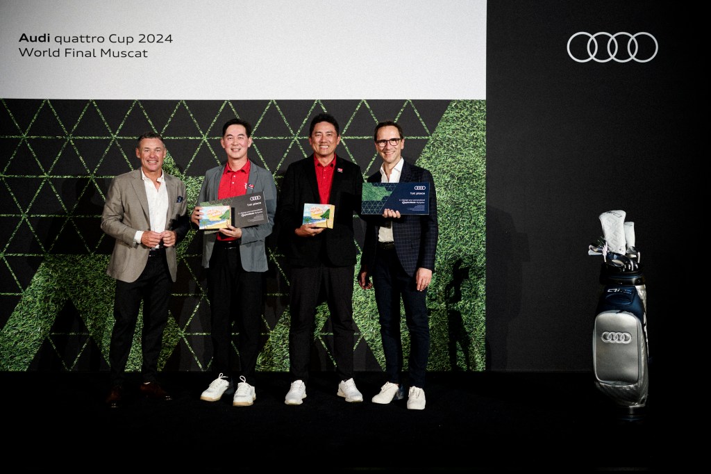今年共有來自32個國家高球好手一同參與 2024 Audi quattro Cup 車主盃系列賽,World Final全球總決賽於本週11月15至19日在阿曼首都馬斯開特(Muscat, Oman)舉行,日前總決賽傳來捷報,台灣代表隊伍憑藉絕佳默契與球技,於果嶺上揮桿競技,不僅拿下男子最佳近洞獎,更一路過關斬將奪得冠軍最高殊榮。