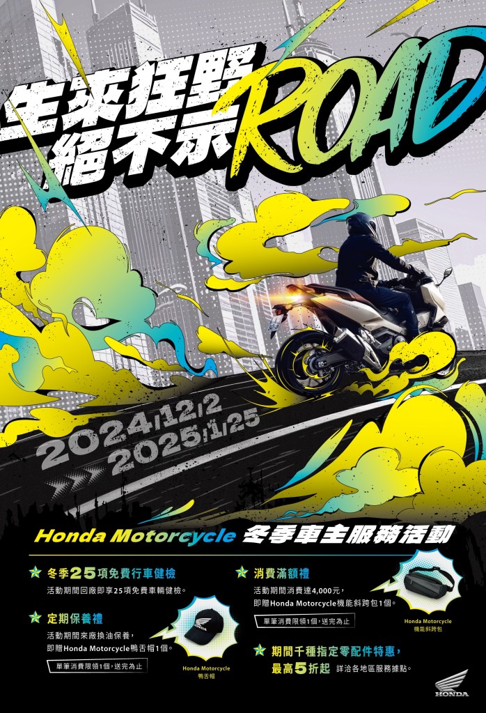 生來狂野,絕不示ROAD!2024年Honda Motorcycle冬季車主服務活動即日起開跑囉!