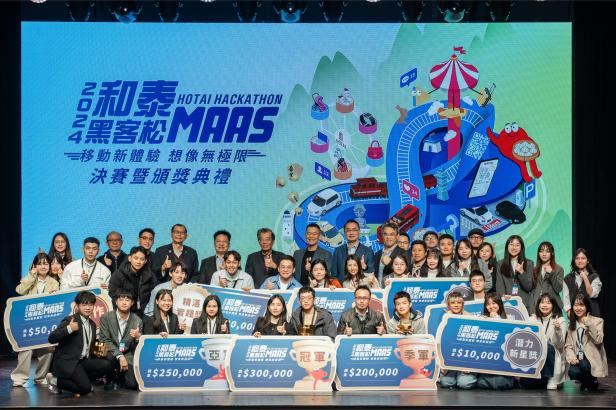 和泰集團秉持以客戶為核心的理念,積極落實MaaS(Mobility as a Service)的發展,運用創新思維打造「MaaS 360數位生態圈」;為鼓勵優秀的青年學子與新創團隊發揮創意,共同描繪移動服務的願景,和泰集團再度舉辦「2024和泰MaaS黑客松」活動,並於12月14日舉辦決賽暨頒獎典禮。來自全台的前十強菁英團隊同場競技,角逐百萬總獎金的獎項與榮譽。最終由「袋熊的屁屁是骨頭」團隊獲得本屆賽事冠軍殊榮,表現獲得評審肯定,成功抱回冠軍獎盃與獎金30萬元。