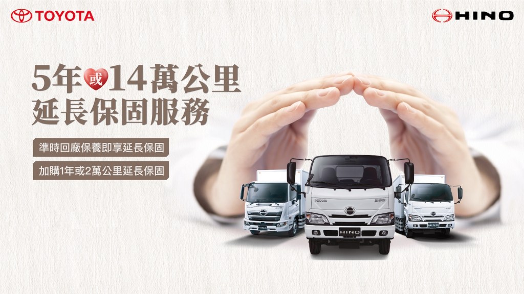 *3:老顧客係指「於4年或12萬公里新車保固期間內之車輛」;加購延長保固相關條件及適用限制等請洽全台HINO服務據點或參考HINO官網。