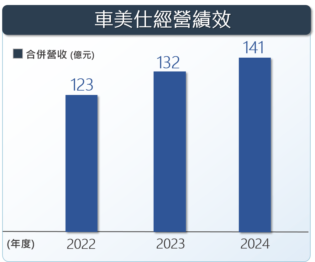 回顧2024年,車美仕在穩固台灣市場的同時,積極拓展海外市場,中東、東南亞等海外據點在2024年皆擴大營運規模,去年海外市場的營收超過40億,較前一年度成長10%。