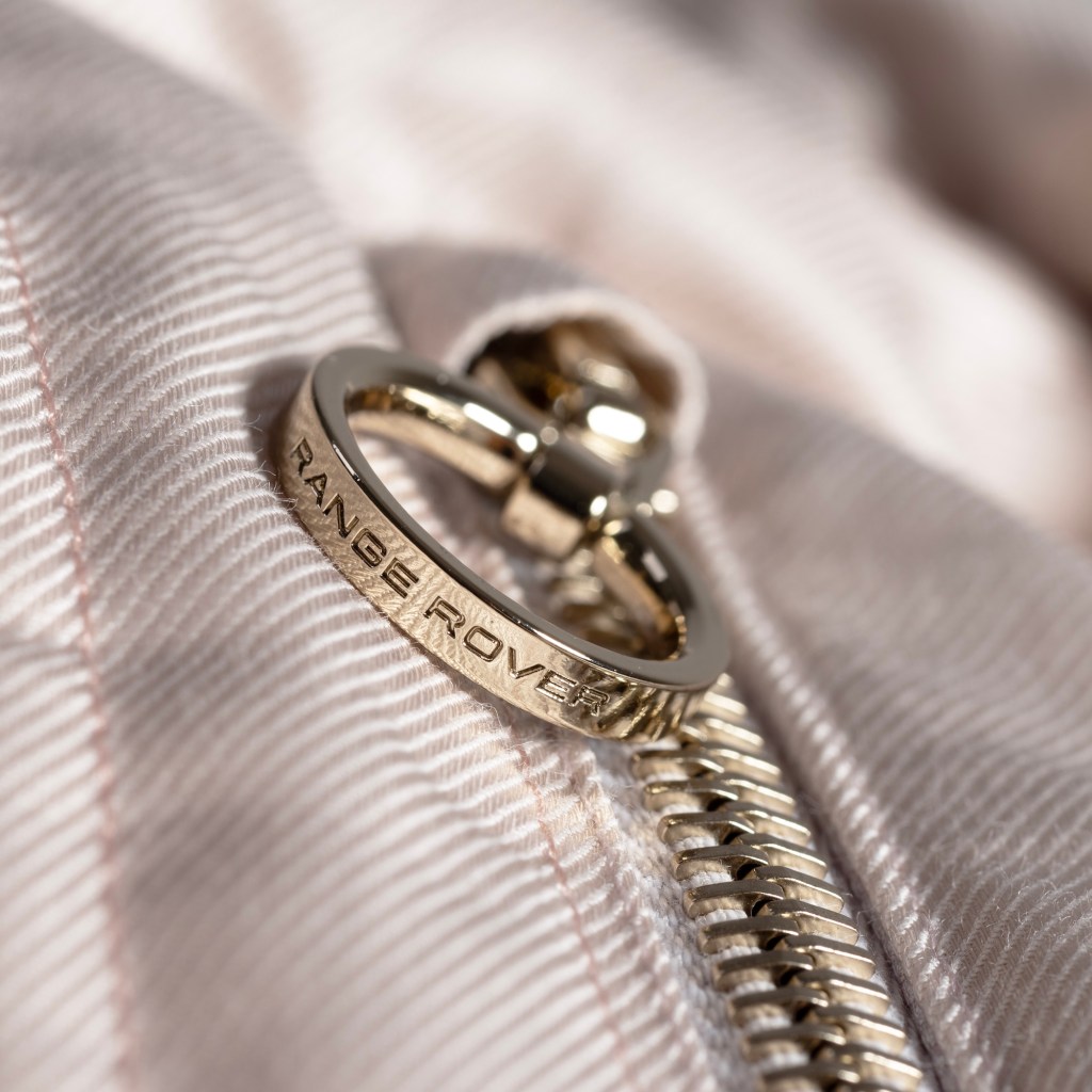 系列融合了 Range Rover 精緻簡約的現代主義設計理念,其中包括對經典線條、絎縫工藝和奢華面料的注重以及精緻的細節。例如男女款雙面夾克上的訂製拉鍊金屬件,這是對 Range Rover 經典設計的致敬,其靈感來自於曾經是 Range Rover 車艙內特色的換檔旋鈕,以及其獨特的日落古銅色車漆。