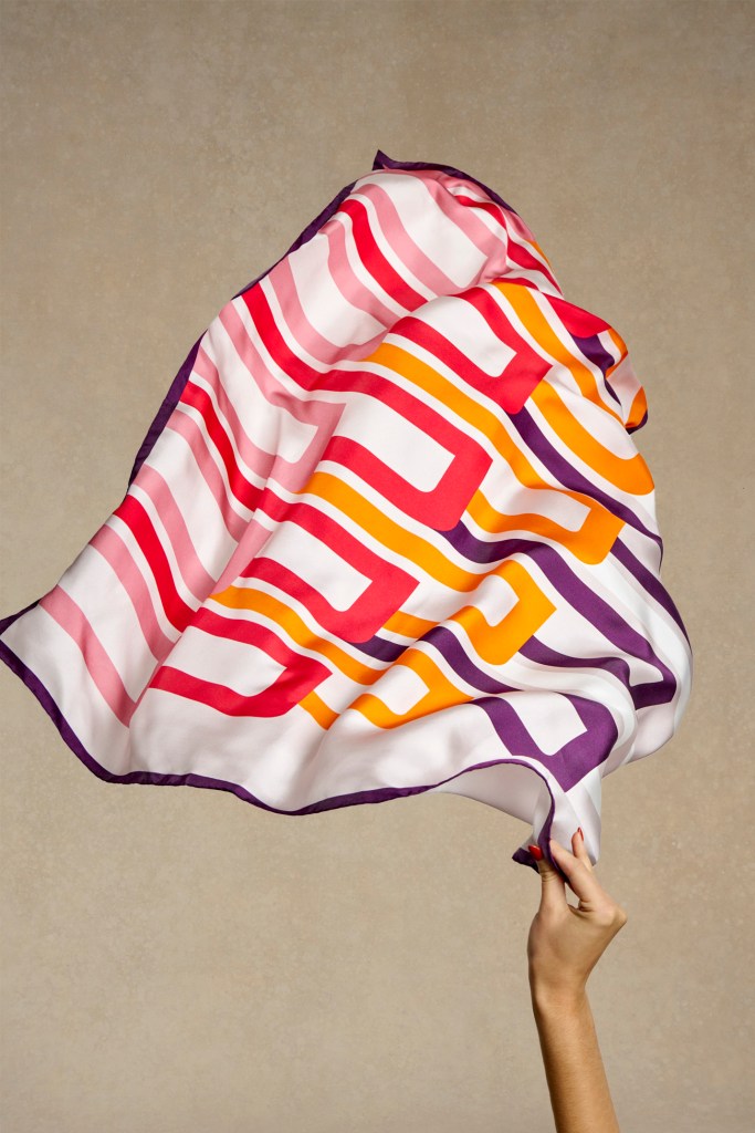膠囊系列中推出《About Town》與《Chelsea Blossom》兩款現代純真絲圍巾設計,呈現了英國和歐洲跨越數個世紀的工藝歷史。《About Town》由位於義大利科莫湖的專業製作團隊製作,而《Chelsea Blossom》則在英國麥克爾斯菲爾德僅存的幾家工廠之一製作。包括精美的手工捲邊,由於該單品注重手工加工技術,每條圍巾的產量都有限。其清晰圖形印花是對色彩的大膽詮釋,而優雅的垂墜感彰顯了 Range Rover 的精緻與純粹。