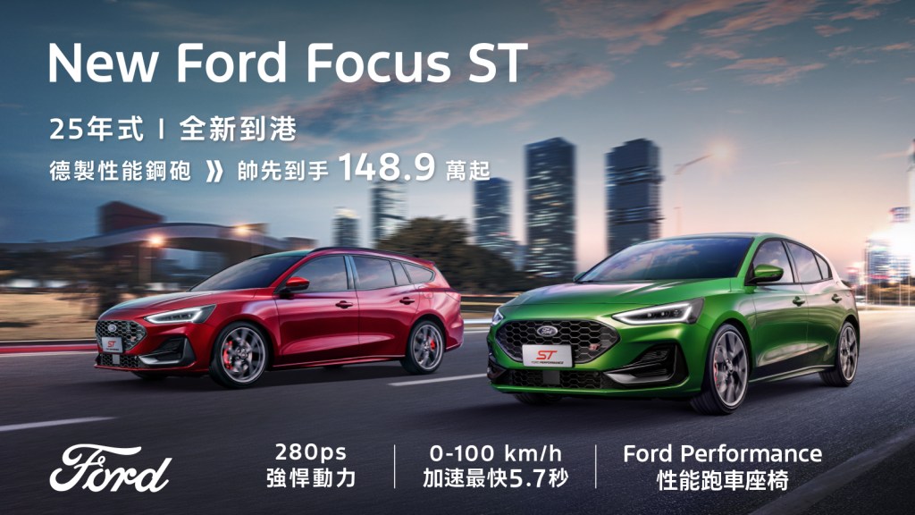 自2001年進入台灣市場以來,Ford Focus憑藉歐系運動化底盤與獨特設計深受肯定,並於2004年國產化後,持續推出多元車型與動力選擇,累計生產突破18萬輛,奠定市場領先地位。作為同級唯一提供五門掀背、跨界休旅、跨界旅行車、德規運動旅行車及Ford Focus ST性能車型的品牌,New Ford Focus完美融合不同性格風貌與運動化DNA,打造標竿級產品陣容,讓消費者依循個人風格挑選最適合的車款。New Ford Focus搭載1.5升EcoBoost®渦輪增壓汽油引擎與SelectShiftTM八速手自排/自排變速箱,提供最大182ps馬力與24.5kgm扭力,並導入德規EPAS電子轉向、EBB電子煞車增壓等科技,帶來細膩穩定的駕馭體驗。