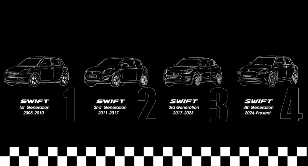 2024 年,全新 第四代 SWIFT 在台上市,延續運動化設計,並進一步強化 空氣力學效率。車內配備 全數位儀錶板 及 ACC 主動式巡航與車道偏移輔助 等駕駛輔助科技,提供更智能、安全的駕駛體驗。動力方面,採用輕油電混合系統,展現 SUZUKI 在節能環保上的努力,迎合台灣市場日益增長的環保需求。