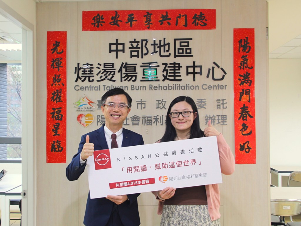 NISSAN將永續經營臺灣市場作為企業營運目標,長年來多面向投入社會公益活動,包含教育面、體育面、環境面與關懷弱勢等等,裕隆日產汽車鐘文川總經理於3月13日前往陽光社會福利基金會中部辦公室,代表NISSAN接受感謝狀時表示,本募書活動是NISSAN長期公益承諾的一環,藉此發揮品牌影響力,感謝廣大NISSAN車主、同仁與消費者共襄盛舉,造就善意的正向循環,本活動自2020年以來,已募集超過8,000本書籍,讓閱讀不僅能夠傳遞知識,更能成為幫助需要者的橋樑,轉化為關懷及幫助,支持燒傷與顏損傷友的心理重建。