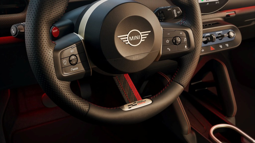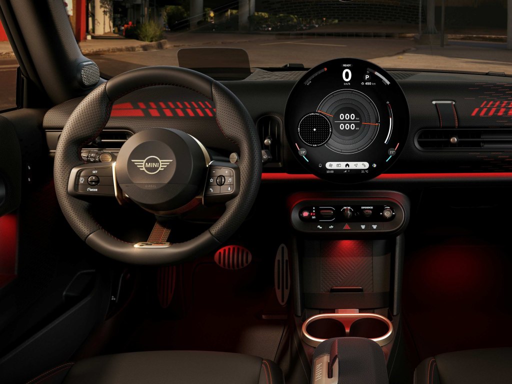 全新MINI John Cooper Works擁有七種專屬MINI Experience Mode體驗模式,以多元駕馭風格滿足各種行車需求,打造個性化駕駛體驗,無論是日常駕駛、燃油效率還是極限駕駛,駕駛者都能找到最適合的駕駛模式。圓形OLED中控互動式螢幕搭配兩個投影元件,能將多達七種發光圖像投射到儀錶板上,為駕駛者帶來視覺與聽覺的雙重感官饗宴,沉浸式環艙氣氛燈與專屬音效,為每一趟駕駛注入獨特的座艙氛圍。