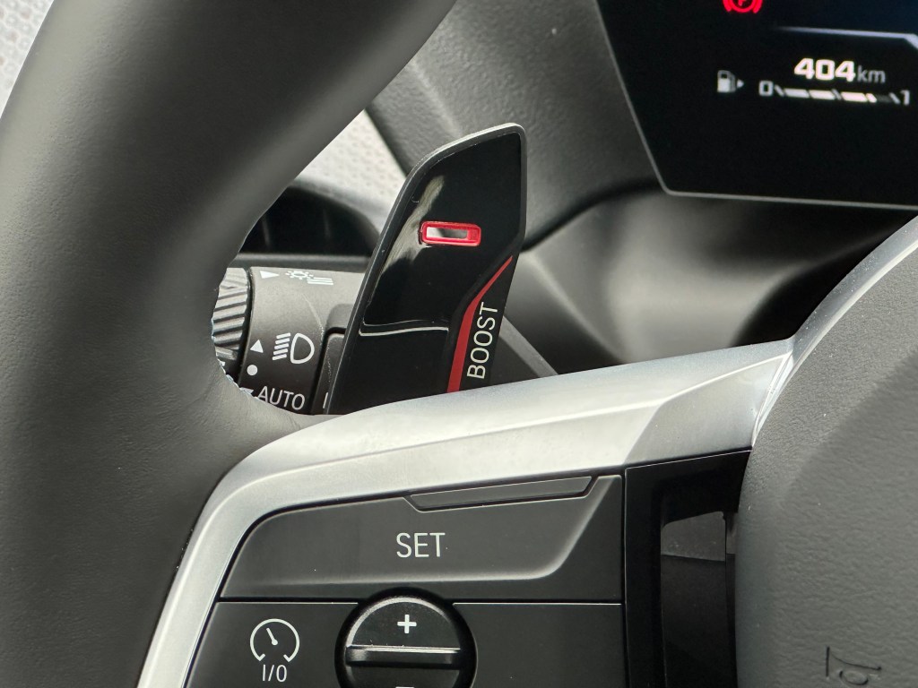另一個讓人玩性大發的機能則是Boost功能,它讓換檔撥片有了新的存在意義,使用方法是持續按下位於方向盤左側的降檔撥片2秒,車輛會進入Boost模式,這個模式聯動引擎、變速箱以及電子懸吊,所有的設定都會進入最戰鬥的參數,意味著最激進的油門反應以及檔位選擇,官方說法是可以釋放全部的300匹馬力,但我們實際開起來的感受,更像是比一般模式多出一到兩成的動力,不僅衝勁十足,按住換檔撥片的啟動模式更是充滿了儀式感,為駕車添增了一些額外的趣味。