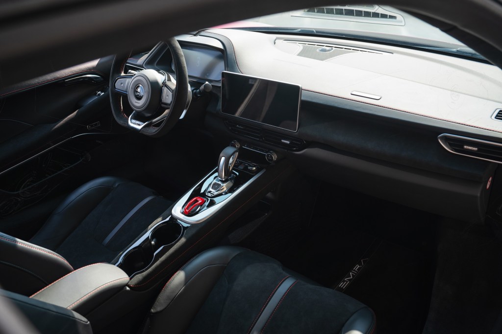 更強化其運動跑格的外觀設計,可見於Zinc Grey鋅灰色外觀車色、專為此車型打造的緞面灰色20吋V 輻鍛造鋁圈,搭以紅色剎車卡鉗、飾於車身C柱旁Emira Turbo SE車型銘牌飾板、多處選用黑色套件:圓形Logo、品牌字標與排氣管尾飾管等;內裝則選用 Alcantara 麂皮車頂,進一步提升車艙質感與競技氛圍。