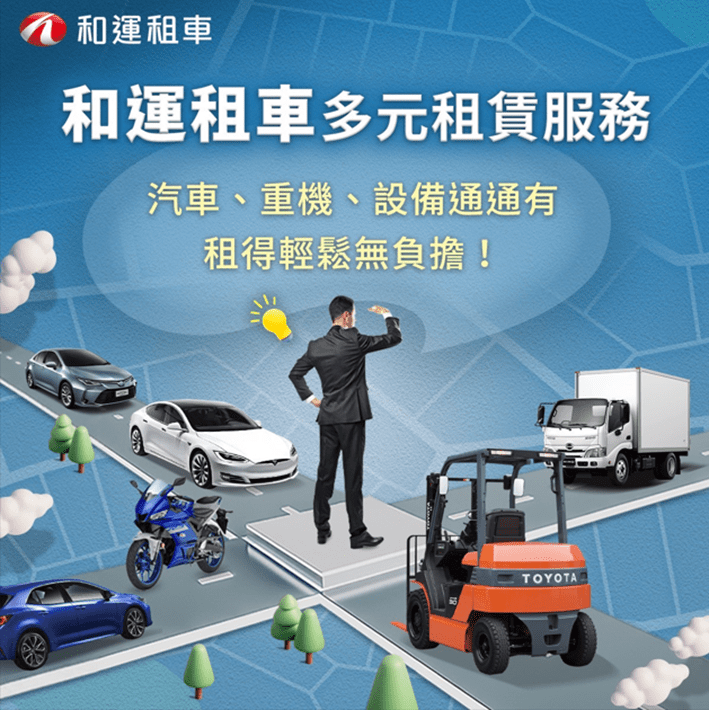 為因應市場趨勢與消費行為轉變,和運租車積極推出創新產品,如訂閱式租賃方案、認證中古車租賃、企業電動車專案等,提供彈性用車選項。除了為TESLA指定合作夥伴外,陸續推出其他品牌的電動車優惠方案,如近期KIA、HYUNDAI等韓系品牌的「純電駕馭」專案,推廣電動車租賃,以實際行動響應低碳永續趨勢。為滿足高端市場需求,亦推出「LEXUS 1+1 自由配」訂閱式豪華車方案,展現品牌對於顧客多元需求的敏銳洞察與快速回應。除車輛租賃外,亦針對企業客戶提供設備租賃服務,涵蓋生產設備、醫療器材與事務機具等,展現多元化經營效益,進一步鞏固市場地位。