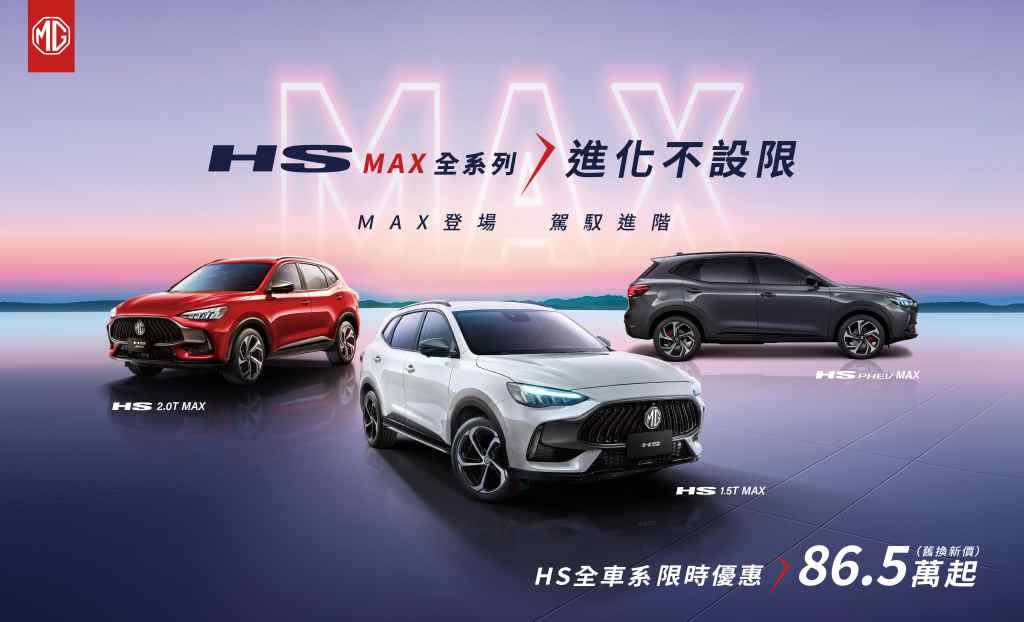 為了呼應市場對 MG 品牌「滿配上陣、免選配」的高度肯定,本月特別針對 HS 1.5T、HS 2.0T 與 HS PHEV 三款主力車型進一步推出 MAX升級車型,以最高價值72,000元新增配備滿足消費者對駕馭體驗的期待。MAX車型在既有「超規滿配」的基礎上,再加碼導入多項全方位高價值配備,全面強化外觀美感、實用機能與操控質感,不僅從裡到外一次到位,更「加量不加價」維持原售價確保產品競爭力。
