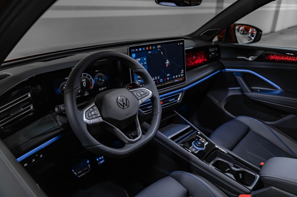The all-new Tiguan首度搭載中央數位控制旋鈕,駕駛可透過簡單的按壓、旋轉或滑動,切換駕駛模式、氛圍模式和調整音量,人車流暢互動再進化。車室以高光澤飾板結合車室氛圍燈環繞,副駕前方可看到車型名稱Tiguan或是R-Line專屬標誌氛圍燈,可隨意設定多重模式如慵懶、愉悅、探索、熱情、寧靜、個人化,依模式不同,氛圍燈、音量、儀表板介面也將連動變更,輕鬆在夜行中打造個人專屬風格。整體設計不僅提升操作直覺性與使用便利性,更讓車主與乘客在每一段旅程中皆能享有先進科技所帶來的便捷與愉悅。