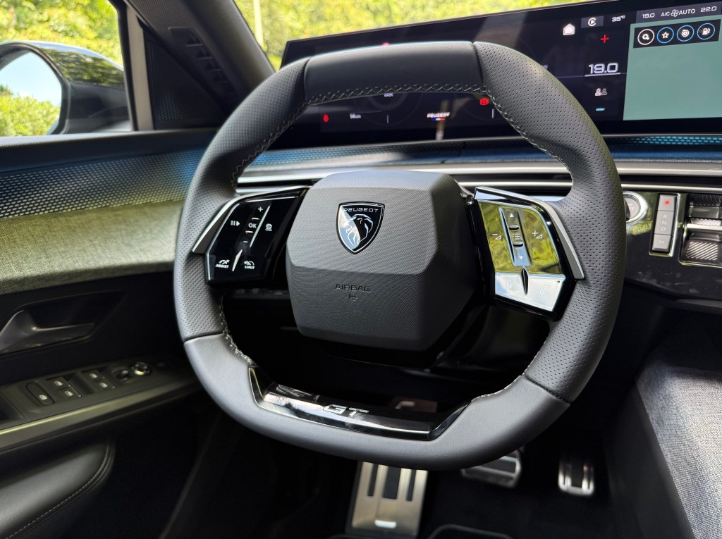 這回試駕的3008為GT CIELO等級,一如408也是搭載「P2」的1,199c.c直列三缸直噴渦輪汽油PureTech引擎,也就是內燃機外加電池與馬達所組成的Hybrid油電複合系統,單引擎輸出功率為136hp/23.5kgm,馬達則是21hp/5.2kgm,綜效馬力輸出為145hp,官方數據0-100km/h加速為10.2秒,單看這些數字或許會直覺認為表現一般,但實際上加速起步卻出乎意料的平順,三缸引擎的抖動也抑制地相當好,起步平順不猛爆拜e-DCS6 濕式雙離合器六速自手排變速箱所賜,所以整體搭配組合下獲得20.2km/L的平均油耗,以經濟考量和日常使用已經相當充裕,再者3008也不是那來競速飆車,這可是完全不符合它的定位。而操控面比起408要來得更好玩,怎說?軸距略短的情況下自然靈巧,雖為前驅但轉向頗為精準,再者處理顛簸崎嶇坑洞路面回饋力道不大,在減震筒和懸吊的通力合作下將震度有效消弭,同時高速行駛也頗為沉穩,不會有那種輕飄飄的感覺,不過因車身較高側風時還是會受影響,當然這也是所有跨界及SUV不可阻抗的通病。