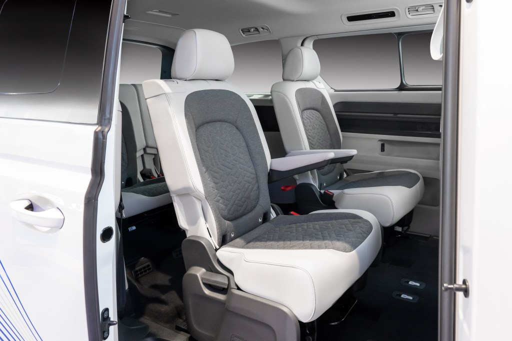 全新 ID. Buzz 六座版的車身尺碼,與七人座車型同為長軸車身 – 4,962 x 1,985 x 1,927 mm,並擁有 3,239 mm 的超長底盤軸距,不僅是現今台灣電動乘用車市場中軸距最長的車款,座艙內部高度同樣具備 1,330 mm 的高水準,創造出寬敞無比的車艙空間。有別於長軸七人座版本的「2-3-2」三排座椅設定,其採用「2-2-2」六張獨立式座椅設計,為每一位車內乘客規劃出專屬乘坐空間,每張座椅均具備獨立調整功能,搭配第二排座椅均配備可自由調整角度的側扶手,提供更優異的專屬乘坐質感。