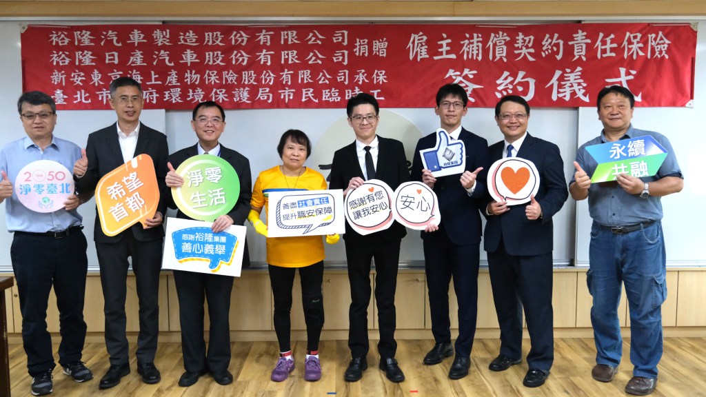 每一座城市的整潔與美麗,背後都有一群默默付出的身影,裕隆集團身為深耕台灣多年的在地本土企業,積極推廣交通平權觀念以提升道路安全,並在各面向關懷竭力守護市容的勞動者,與政府共同搭建韌性社會的防護網,期望全體環保市民臨時工都能無後顧之憂地安全工作。今(31)日,裕隆集團旗下裕隆汽車與裕隆日產汽車再次共同捐贈新台幣100萬元,支持臺北市政府環境保護局辦理「雇主補償契約責任險」,為現任1,454位市民臨時工與短期就業人員提供安心的職安保障,新安東京海上產險亦特別捐贈1,000雙反光袖套,由臺北市環保局盧世昌副局長及環保局市民臨時工代表共同受贈。