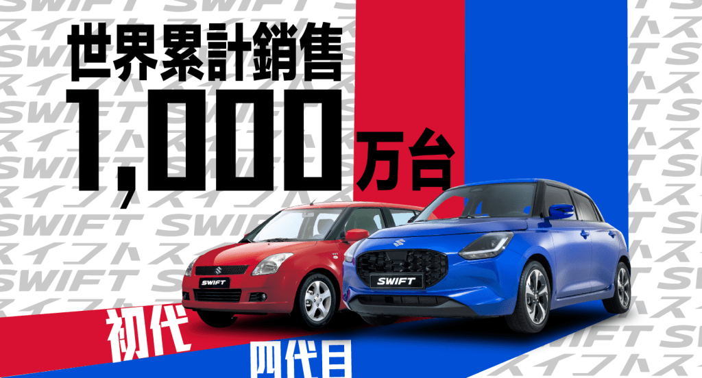 鈴木株式會社宣布,小型乘用車 「SWIFT」截至2025年7月,全球累計銷售突破1,000萬台※。自2004年11月上市以來,歷時20年8個月達成此一重要里程碑。