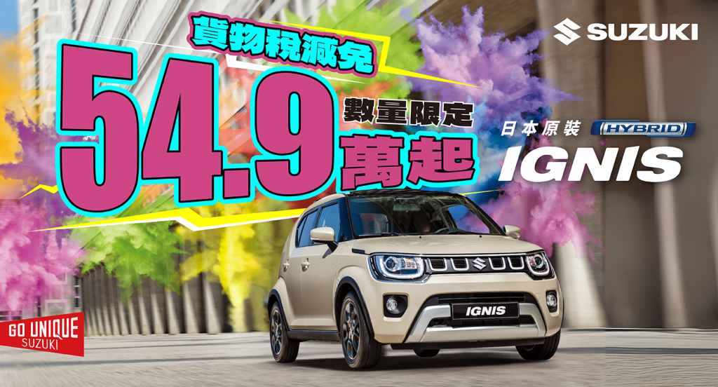 TAIWAN SUZUKI推出IGNIS 結合貨物稅減免與進口車稀有親民的54.9萬元起的全新優惠價格,讓IGNIS不僅是一部代步工具,更是年輕人展現自我風格、家庭享受都會生活的最佳夥伴。透過貨物稅減免優惠,讓IGNIS成為台灣市場最划算的進口車首選,不論是年輕人想要展現個性風格,還是小家庭需要兼顧便利與安全的第二台車,IGNIS都能完美勝任。