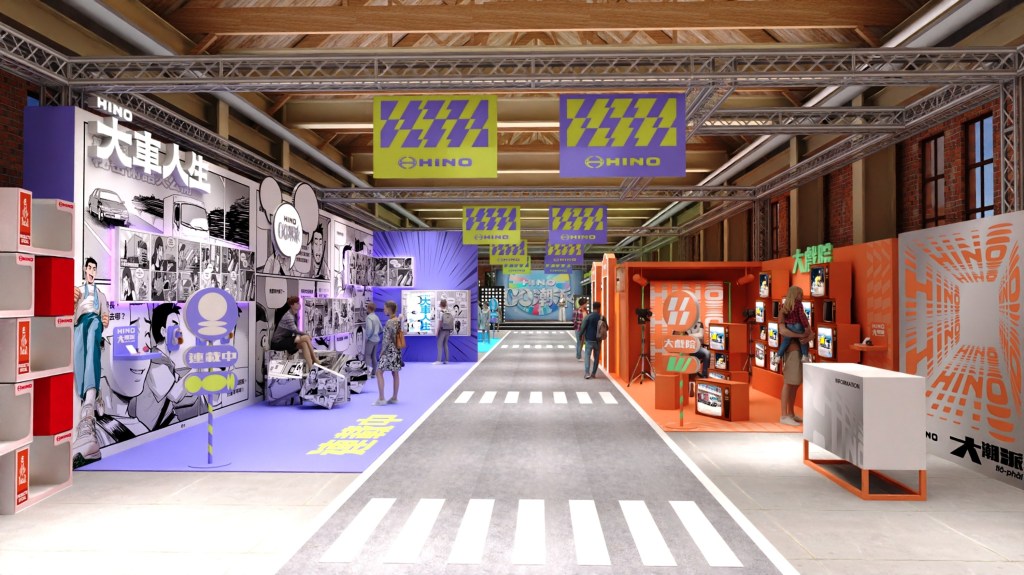 而在華山西一館內,HINO打造了「日野大道」沉浸式展覽,結合多元互動與品牌故事,引領民眾走進大車文化的潮流宇宙。展區涵蓋多項亮點,包括「日野大車誌」以盒玩牆面呈現 HINO 車款進化史、「日野大有料」透過 VR 模擬器體驗先進安全科技、「日野漫畫屋」以巨幅漫畫和廣播帶您走入大車司機的趣味日常,以及「日野大戲院」播映HINO創意打造家、品牌與車主故事系列影集。同時「日野有潮市」與藝術家合作,將汽車廢棄零件回收,再生創作為藝術展品與實用皮件用品,展現永續再生的創意巧思。透過大車潮流文化特展體驗,讓大眾感受HINO商用車推動社會前行的正向影響力。
