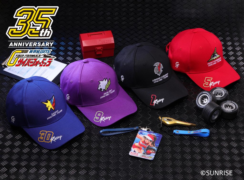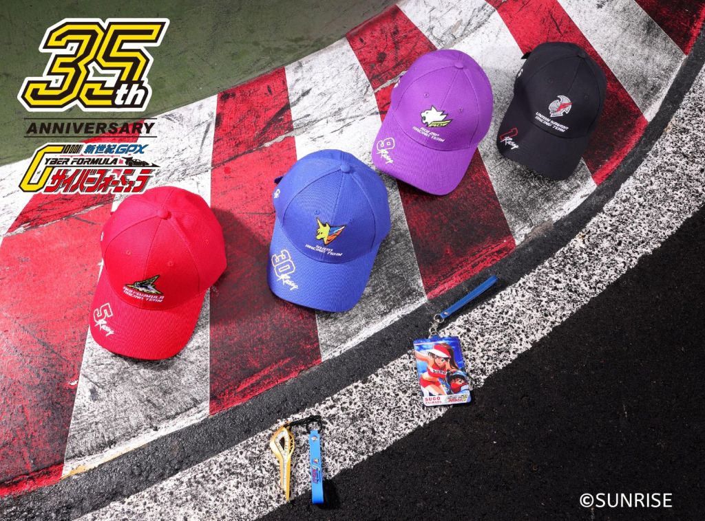 - 潮流車隊刺繡鴨舌帽:以四大車隊(SUGO、AOI ZIP、AOI FORMULA、UNION SAVIOR)配色與隊徽設計,結合精緻電繡工藝,成為動漫迷日常穿搭的潮流單品。