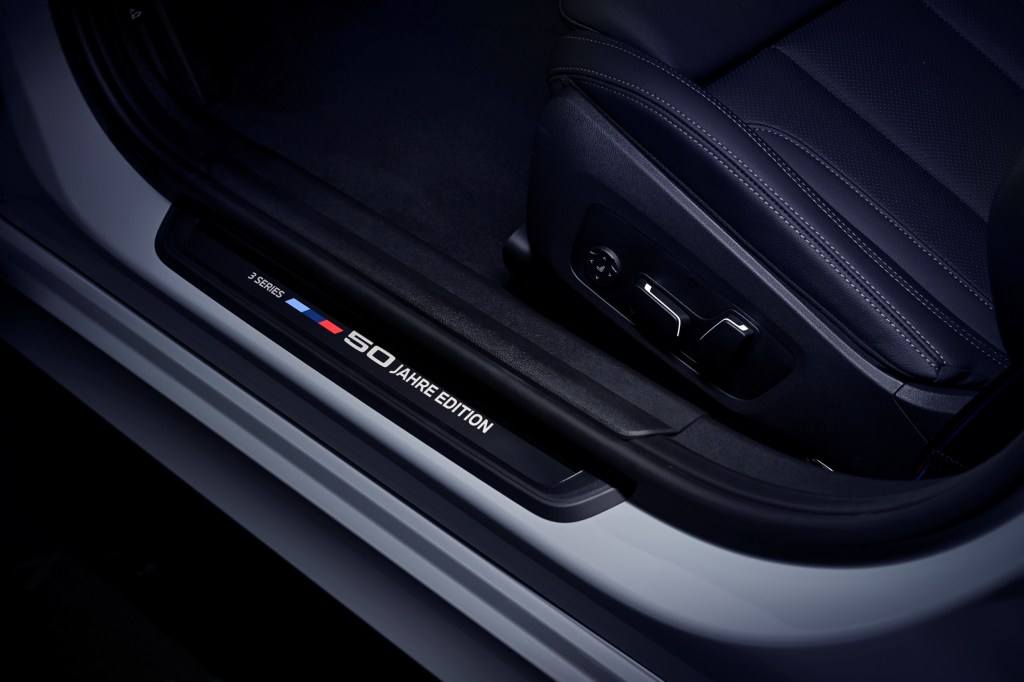 - BMW 320i Touring 50 Jahre 限量版以新世代設計語彙勾勒出全面進化的豪華科技座艙,專屬50 Jahre門檻飾板象徵半世紀傳奇血統的榮耀傳承;車室中央鑲嵌50 Jahre 中控銘牌,並採用M 碳纖維飾板,以動感紋理呼應BMW 3 系列純粹且熱血的駕馭精神。搭配M縫線安全帶,細節之中盡顯運動氣勢與尊榮質感的完美平衡。