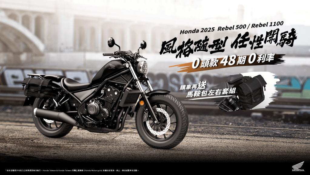 Rebel500、Rebel 1100 享0頭款 48期 0利率購車再送馬鞍包左右套組