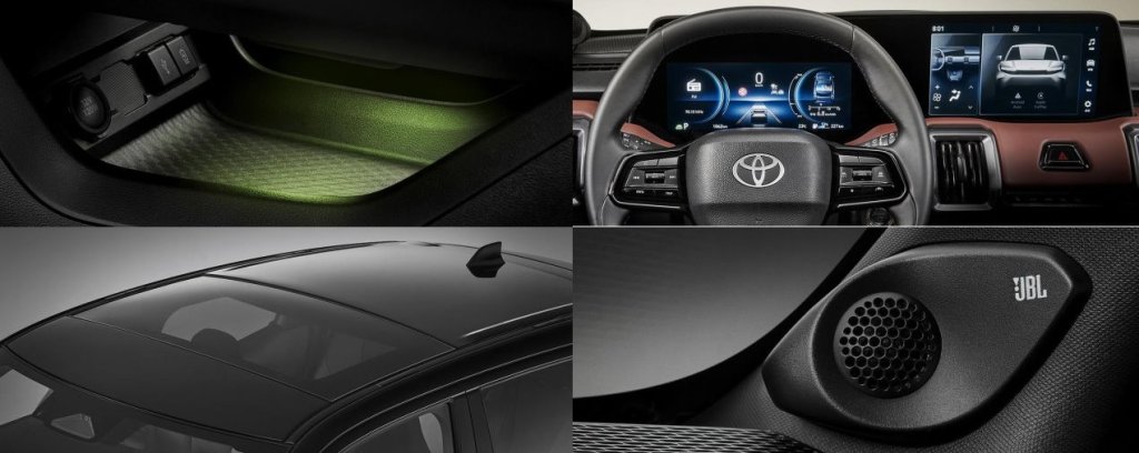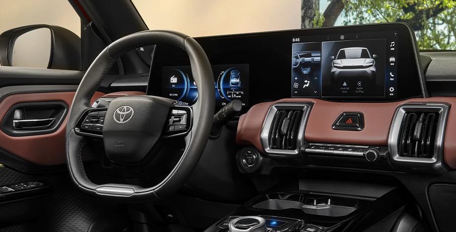 為了彰顯Urban Cruiser的時尚科技感,並具備便利性,內裝為棕色系座艙,中控台、車門飾板皆為質感升級的軟材質;有別於傳統正圓造型、賦予上下緣平整設計的雙輻式方向盤,除了判讀儀表資訊不受阻礙,前方路況視野也更廣,當然夠有助於駕駛人進出的便利性。將10.25吋數位儀表與10.1吋中控觸控主機整合為單一大螢幕的設計,絕對是車艙概念的一大亮點,不僅讓整體充滿科技氛圍,具備直覺的主機介面可調整包含12色氣氛燈、胎壓資訊、ADAS系統與充電狀態等功能,並支援無線Apple CarPlay與Android Auto兩大系統。搭載9具JBL喇叭的音響系統、配備無線充電盤、固定式天窗與手動遮陽簾等的多項配備,打造出無與倫比的科技感與質感並列氛圍。