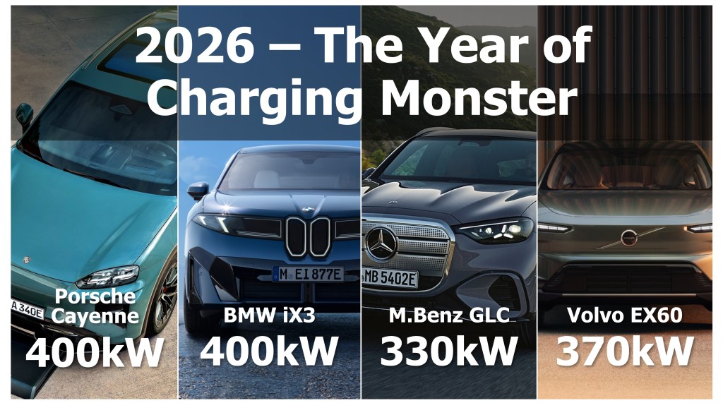 隨著 Mercedes-Benz、BMW 等豪華品牌陸續導入新世代電動車產品,2026 年起,更多品牌亦將引進採用 800V 電壓架構的新車型,車輛原廠標定的充電功率已普遍邁向 330kW 以上,部分車款更進一步提升至 370kW,甚至上看 400kW 等級,對充電功率與穩定性的要求同步大幅提高。