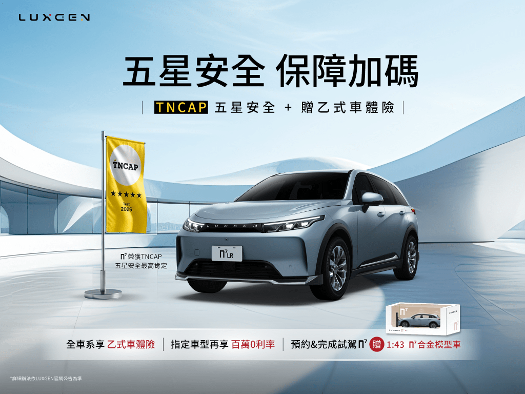 此外,3月預約來店試駕n⁷,即可獲得限量n⁷ 1:43合金模型車,誠摯邀請您攜家帶眷蒞臨全台LUXGEN展間,親身體驗新世代純電休旅的大空間與強勁動力,讓純電移動陪伴您展開2026春季旅程。